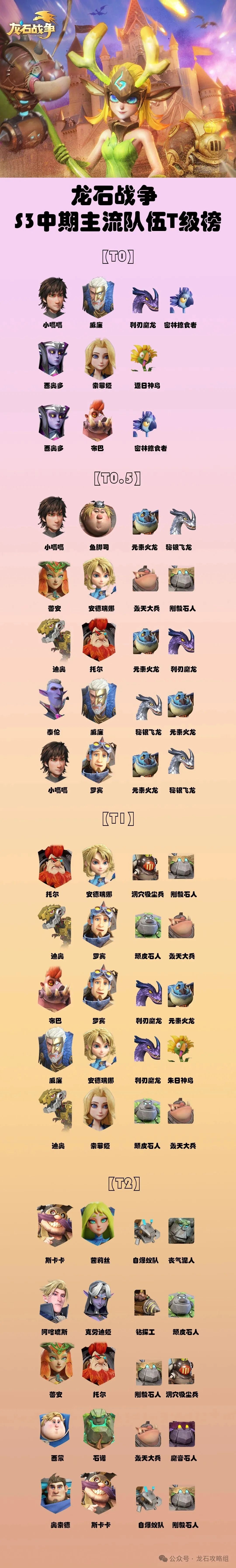 【龙石战争】龙石S3赛季中期主流队伍T级榜