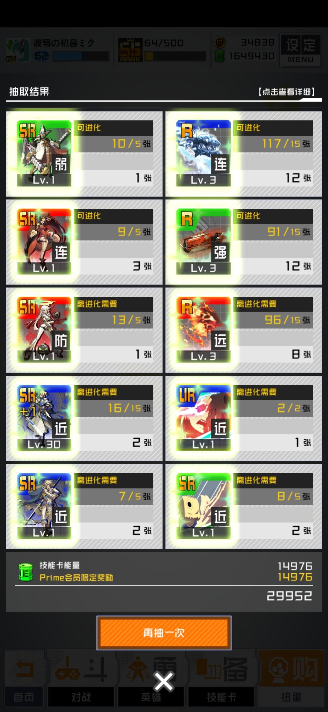 最终结果:UR差2张。大丈夫大丈夫,本来目标已达到,又出了周毒和绿百愈,还附带张远止。知足了