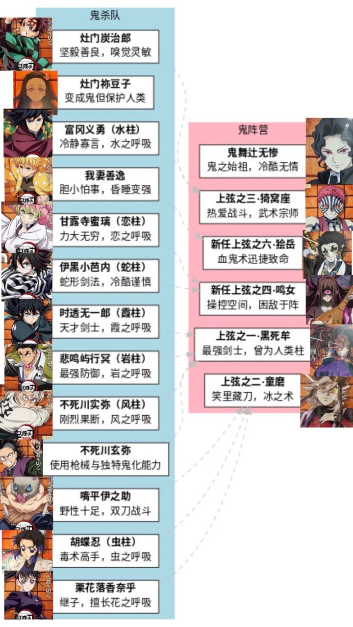 图1️⃣《鬼灭之刃·无限城》角色阵容及对战关系表