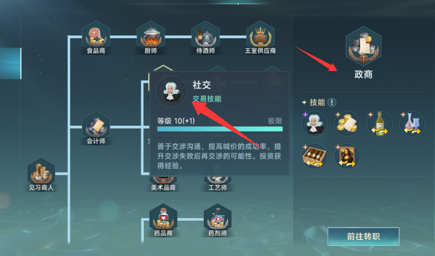 (1)我们需要转优待社交的职业,游戏里社交技能的提升只有靠投资这一途径呢