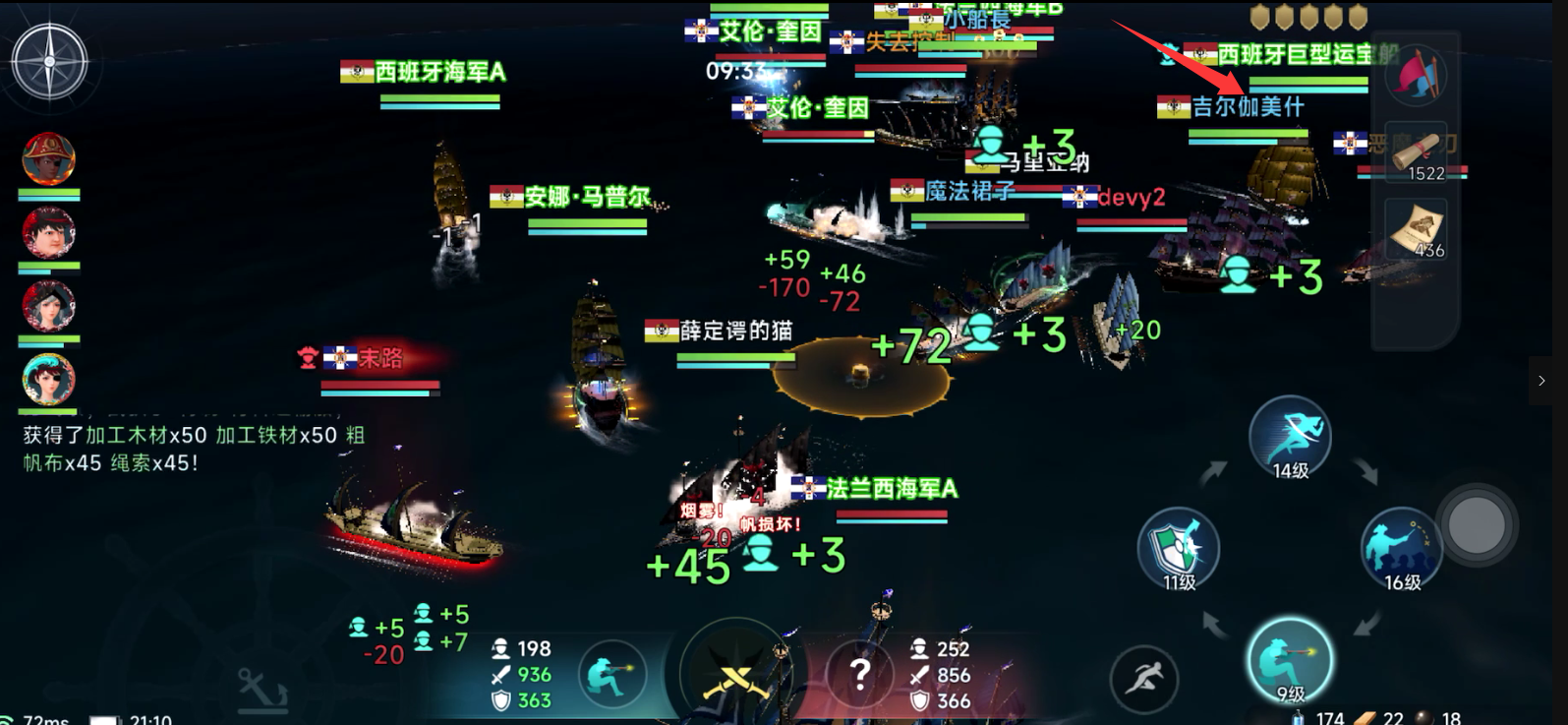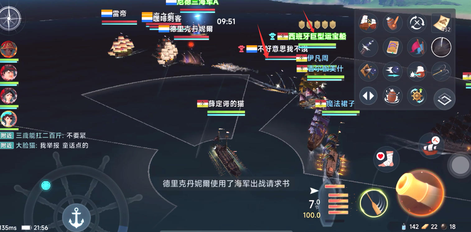 如图,我们又被打劫了,这时候对方都是炮船,我们排船就要做好单抓目标的分配,不要阻挡队友前进的路线。由于现在打劫的基本都是高战,就算打不过我们也要打出气势!
