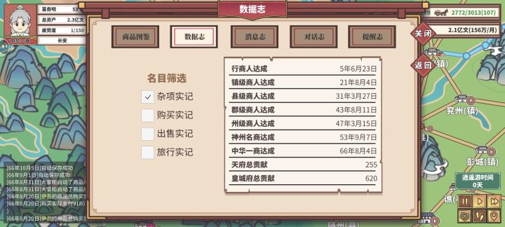 其他就很简单,玩到中期,现金流超过500万就琢磨商号,商号操作也简单,按照流程走就中华一商了。休闲游戏难度不大,可玩性还是不错的