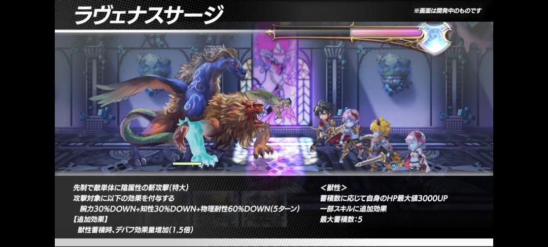 攻击对象附加 力量30%DOWN+智力30%DOWN+物理耐性60%DOWN (5回合)