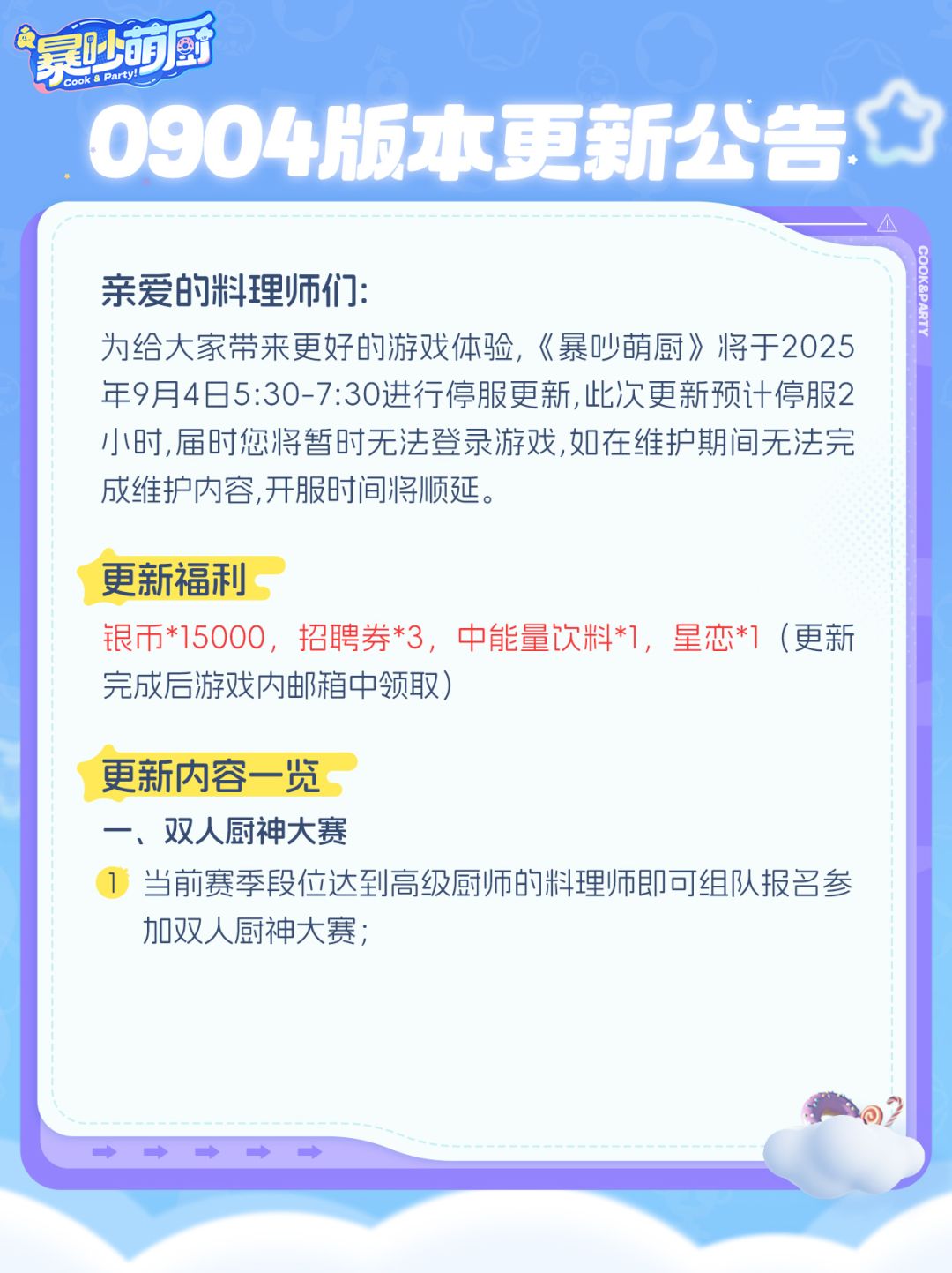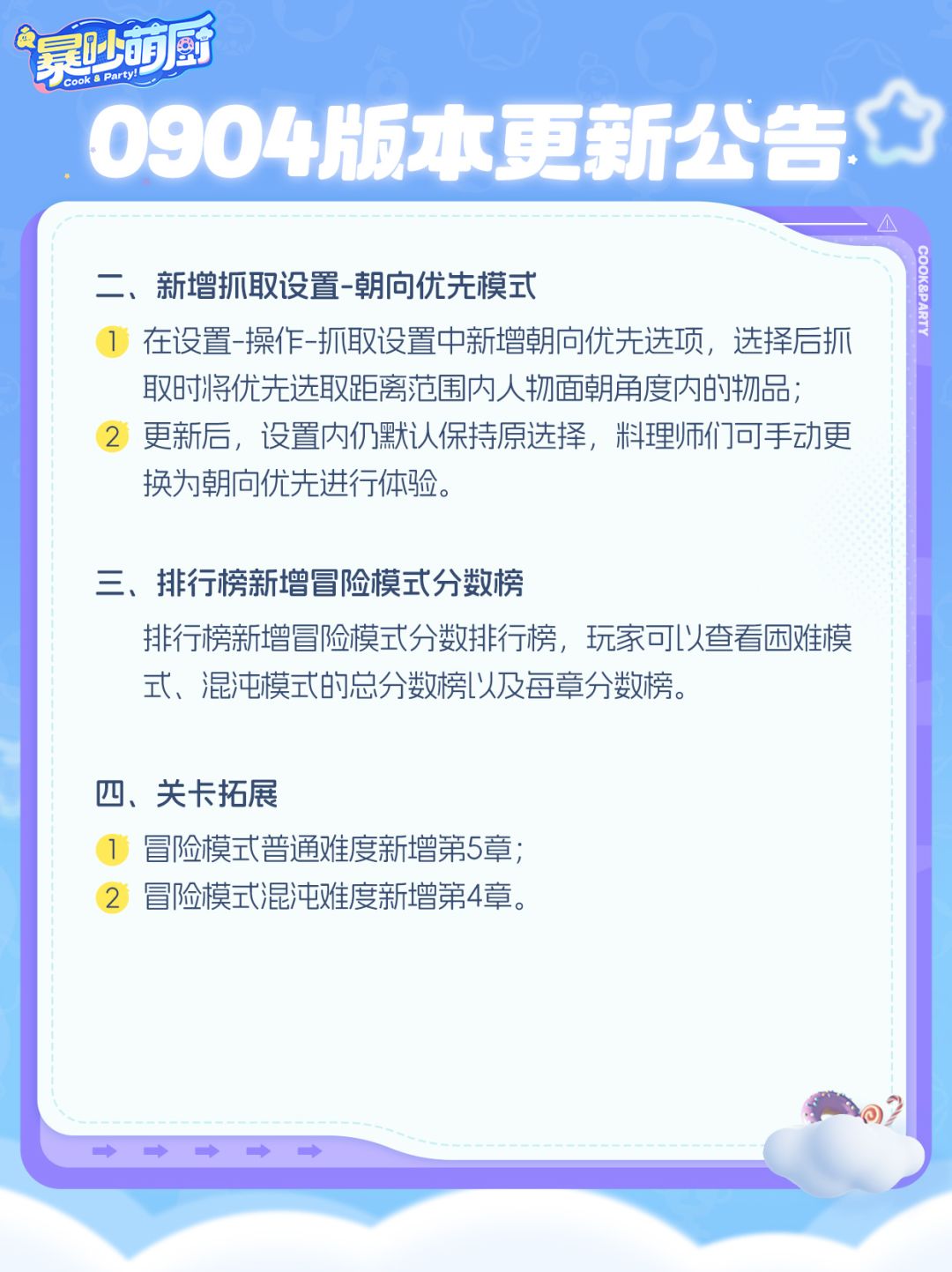 0904版更丨双人厨神赛+冒险关卡拓展!