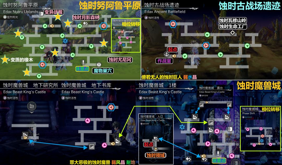 蚀时帕西法尔宫殿-缺损的圆砾;蚀时奥枚加巨城-损坏的蒸汽齿轮;蚀时最终之岛-凝固的鸣沙;