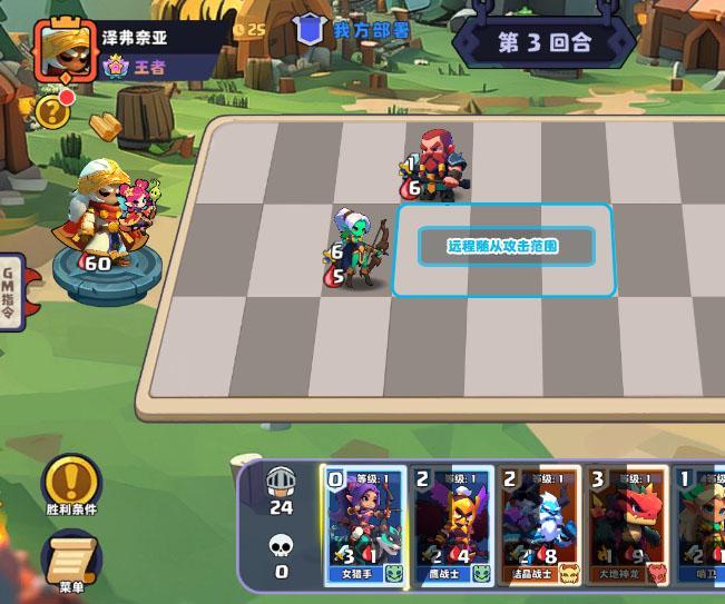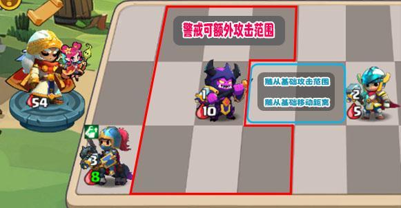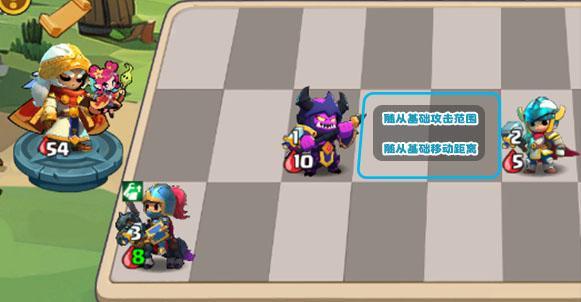 攻击范围为两格距离,随从在移动结束后,会自动对攻击范围内距离最近的敌方随从发起攻击。