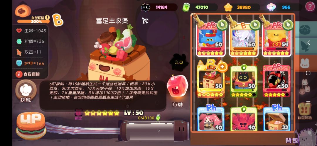 然后迅速把它拉到6星了,但是6星说是有一个主动技能,但进关卡之后技能按钮没有它的只有另外两个宠物的,而且6星还会给别的道具但是我看着它5分钟了它只会给小西瓜【】