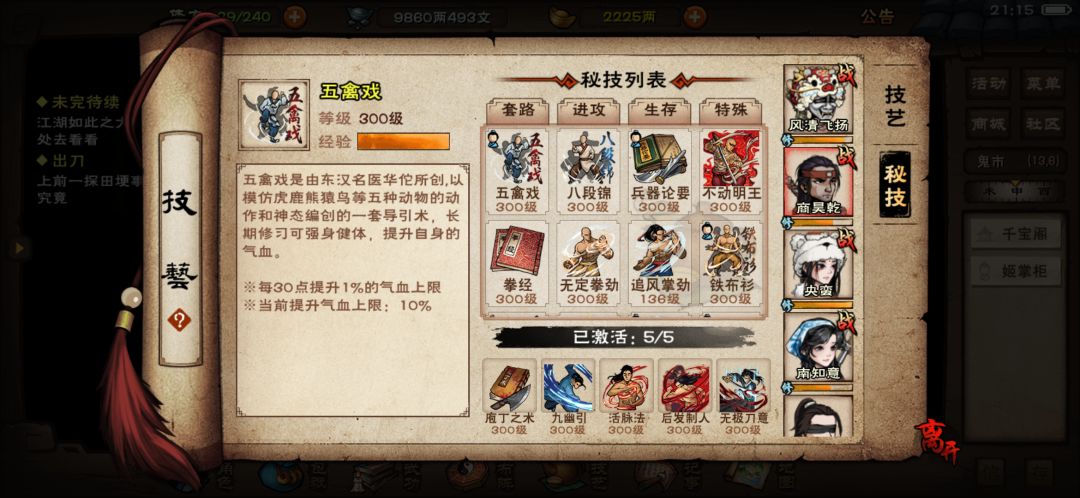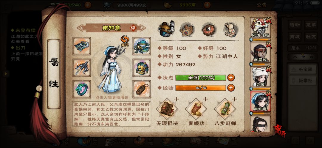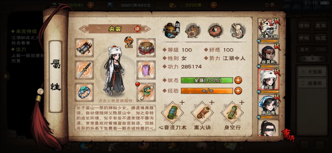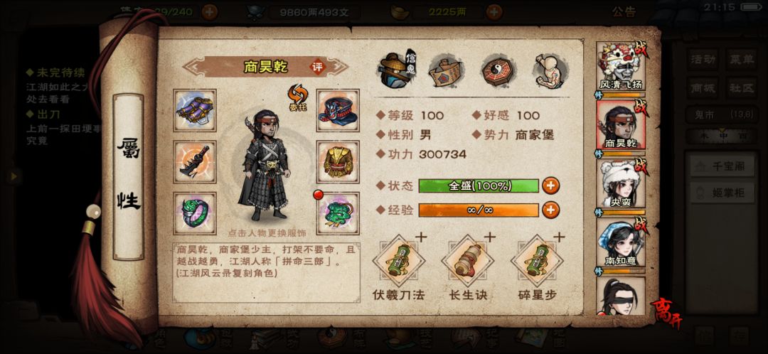 人物配置:用万化阵,主t扛不住的情况,老商带奶,给主t站住。然后随从攻击低的那个随从带心音刀和离火内功。老商伏羲带暴击,致胜秘诀,最高伤害一刀2.7w血老祖。主角大星云就行。我还没上鱼肠剑,如果你攻击不够可以搞一个