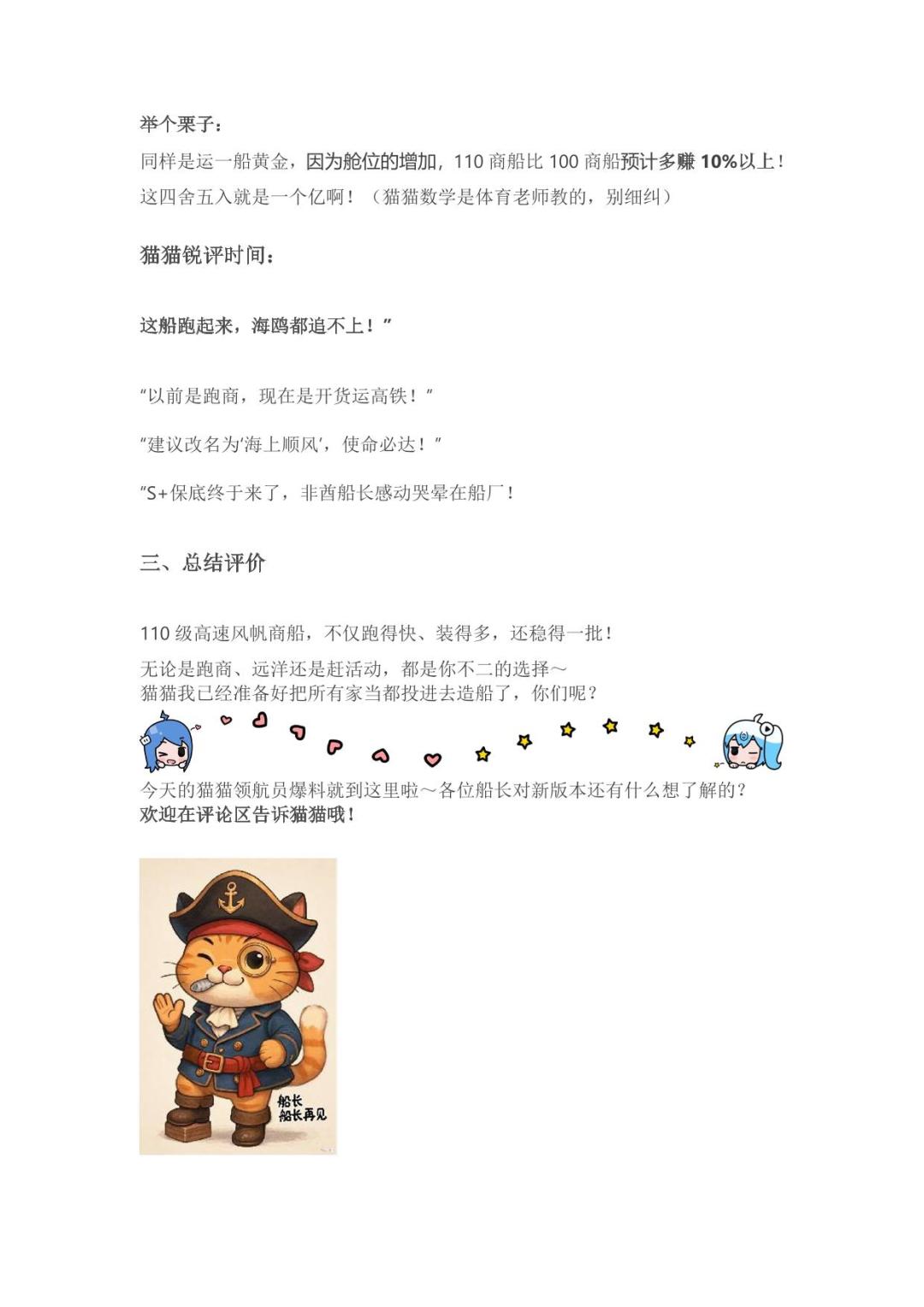 猫猫带来东非版本第三波爆料 110等级船只爆料!