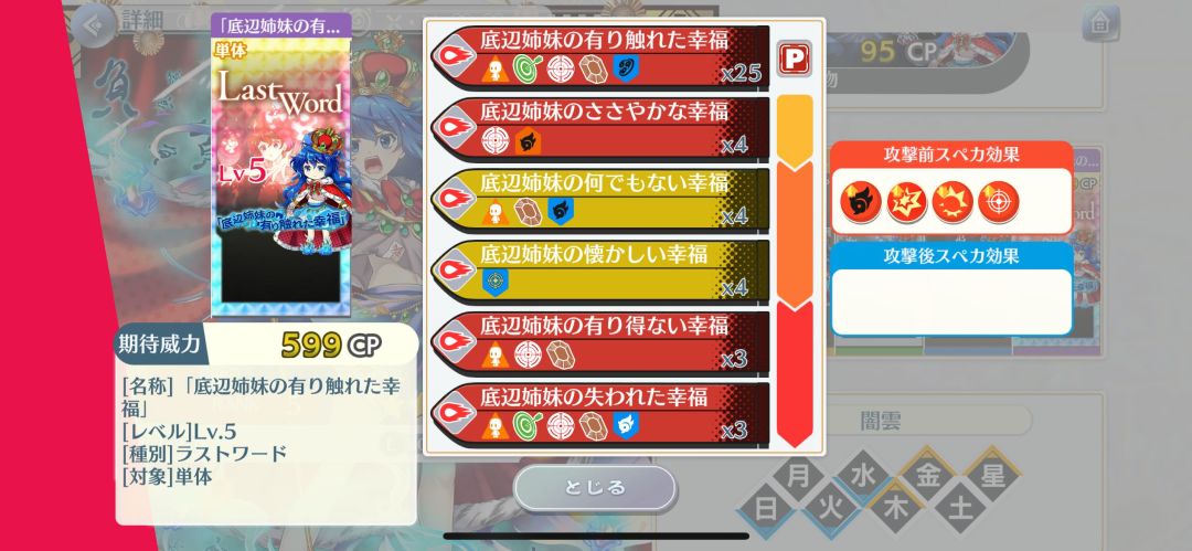 特攻:鬼、不吉、怨灵、财宝、高贵、阎魔、平行世界、黑幕,特攻着实一般,基本上也是靠平行世界撑着了,