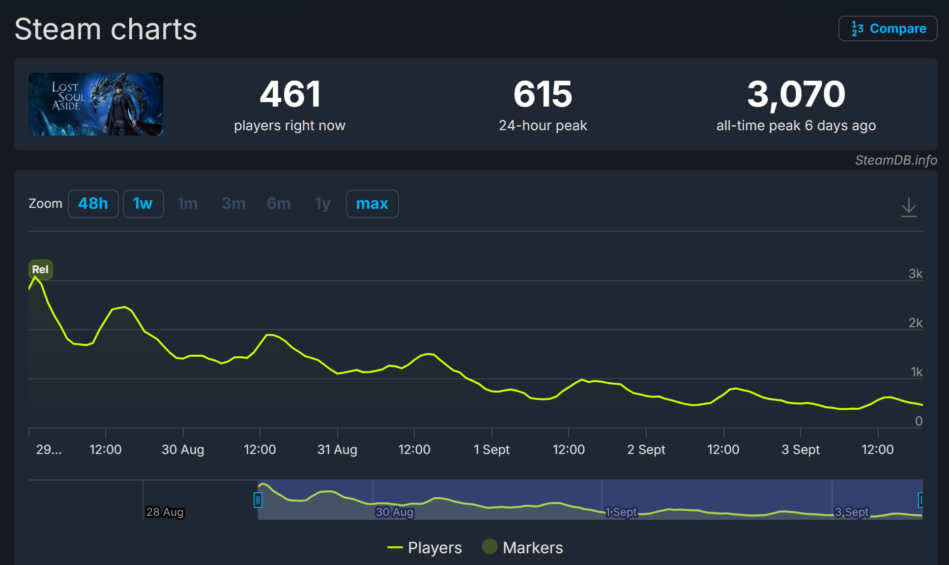 - 玩家在线数低迷 据SteamDB数据,最高同时在线人数为3070人...