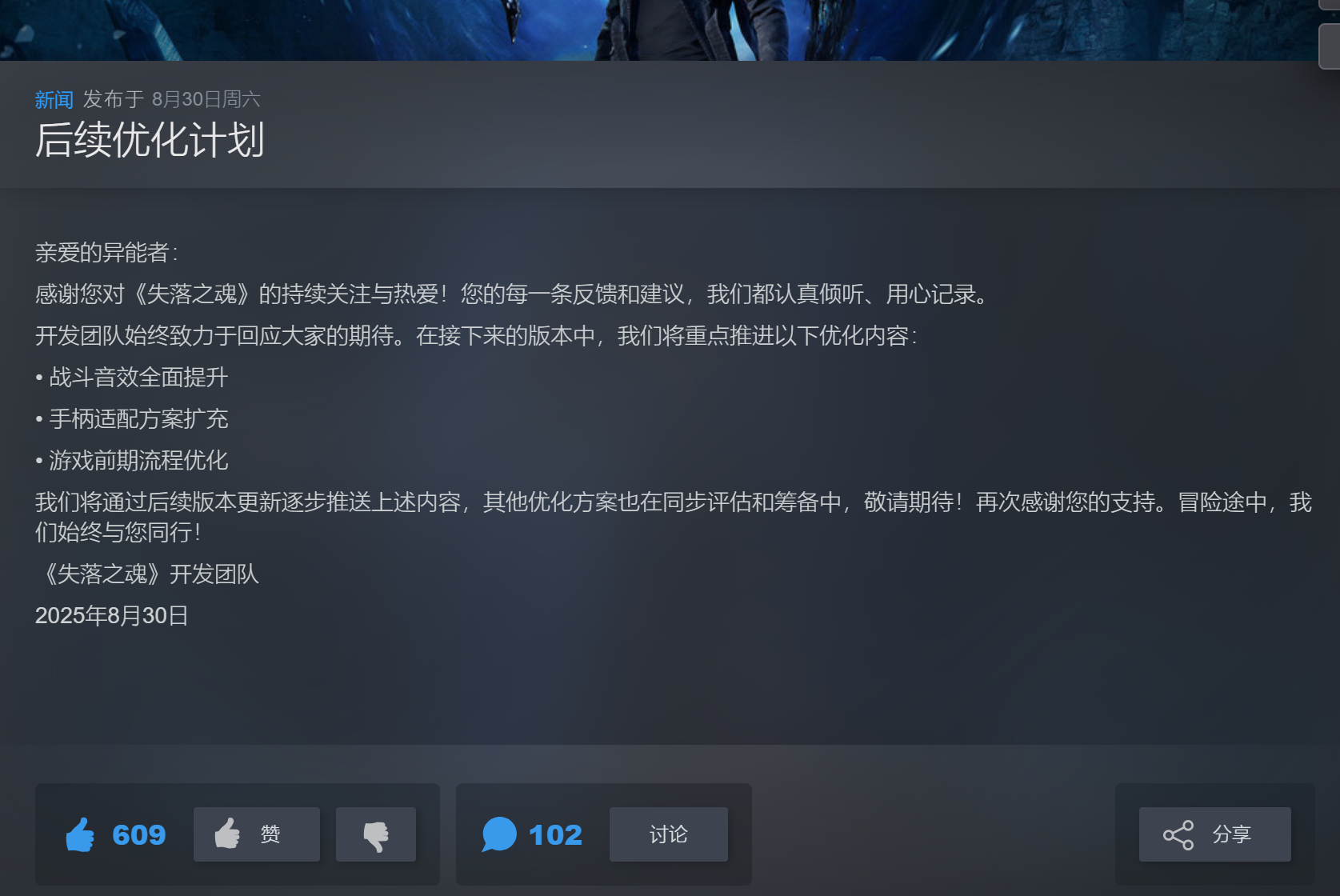 《失落之魂》发售惨淡:抖音直播仅售4份,Steam好评率仅57%↘