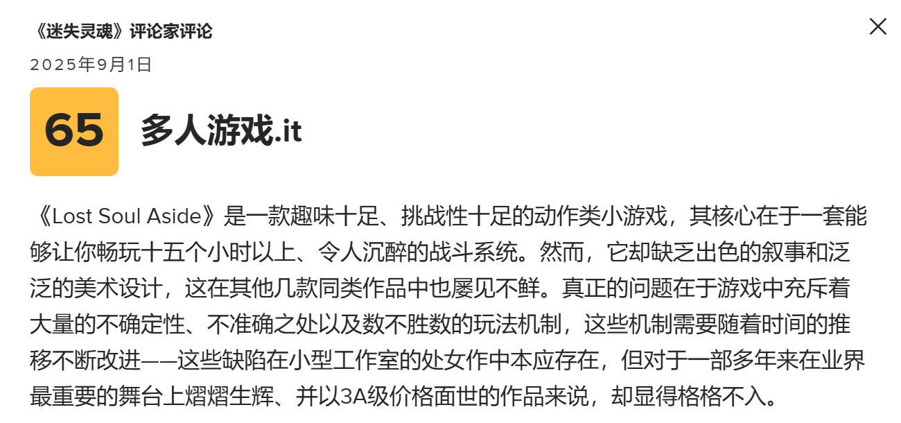 不过大多数及格分数都是合情合理,给出了优点赞美,同时也提出了游戏的弊端所在: