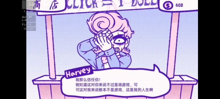 - 死亡结局:用金币把道具升级成小刀后,用小刀一直点击哈维,他会起身反击玩家,如果这时候玩家停止点击,就会被哈维反击成功,触发死亡结局。