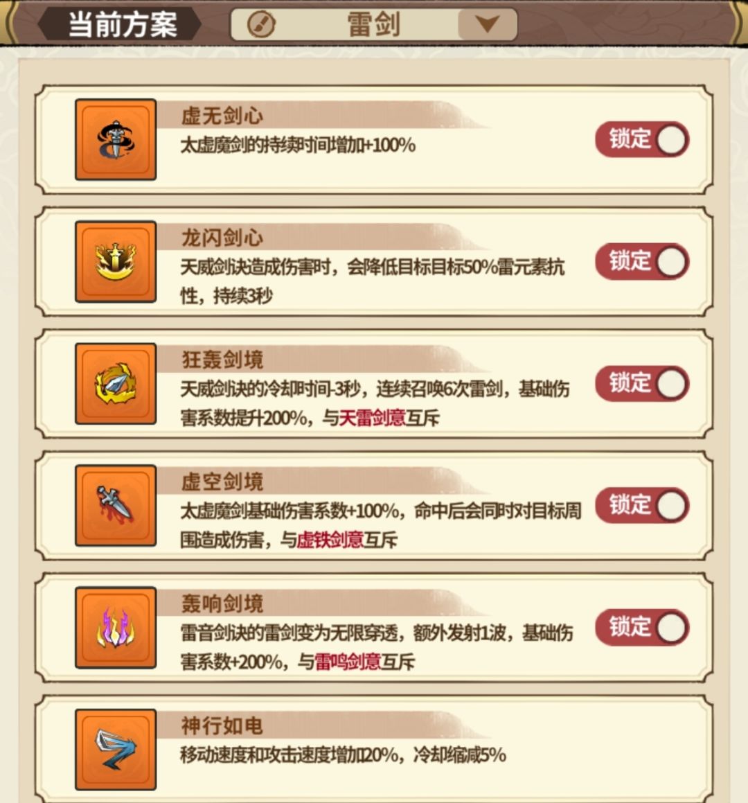 雷剑天赋:虚空 虚无 雷音 狂轰 龙闪 神行,加粗字体为核心天赋。该套天赋需搭配头部无影兜,雷音换凝霜则不需要。武器用霸王、冥月、苍天。该天赋全能,能打所有副本。