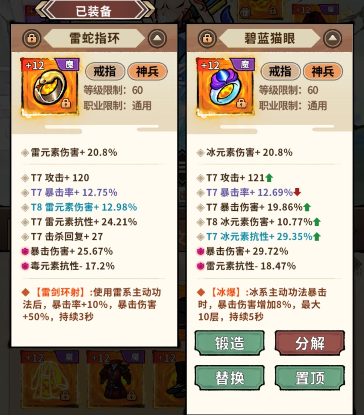 首饰之戒指推荐:雷蛇指环(雷)、碧蓝猫眼(冰)、极品紫戒(特殊词条需祭)、蛇王指环(毒)。