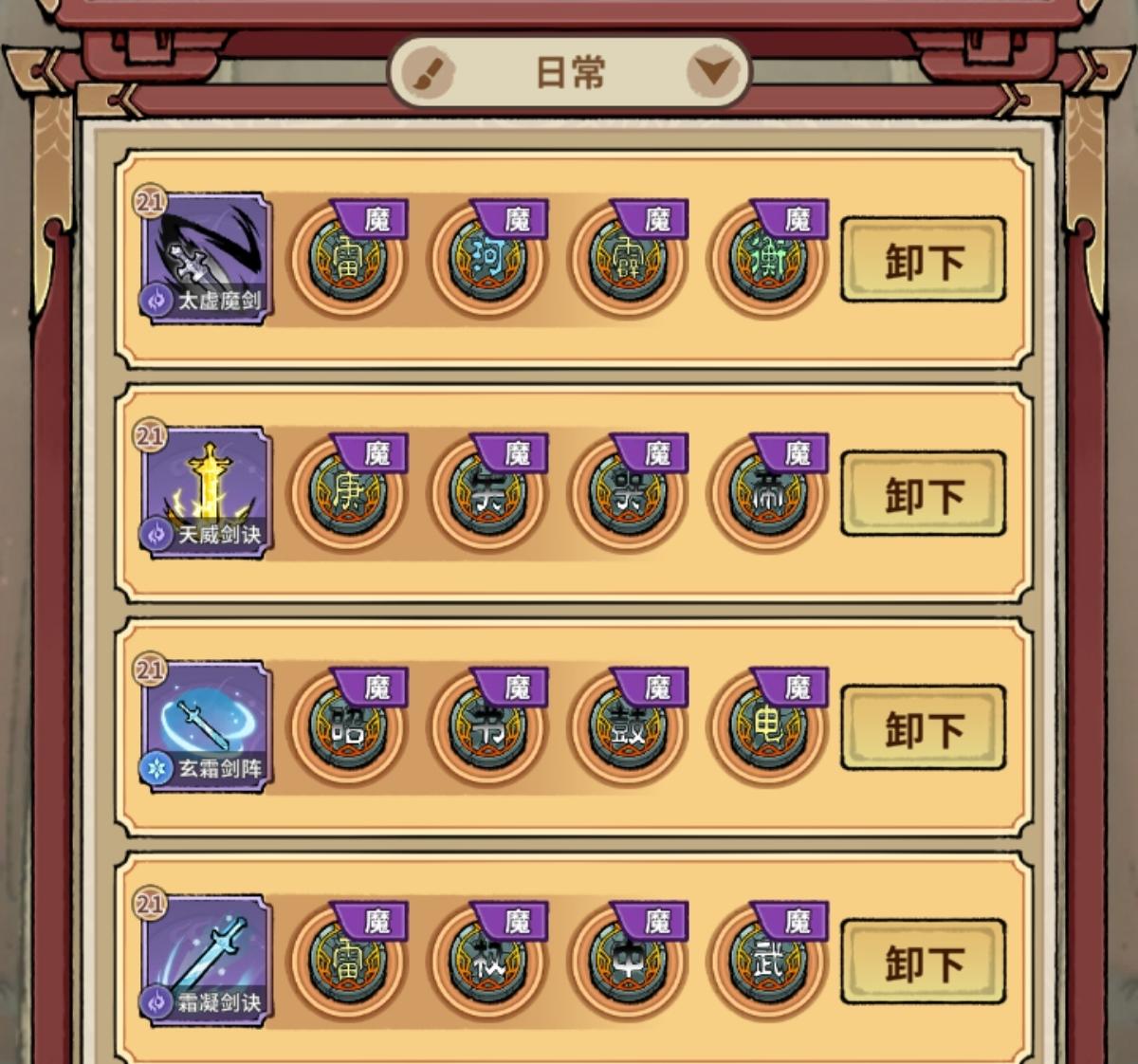 功法推荐:魔剑 剑阵 凝霜,剩下一功法可按需搭配。