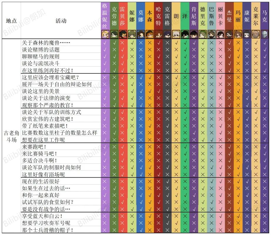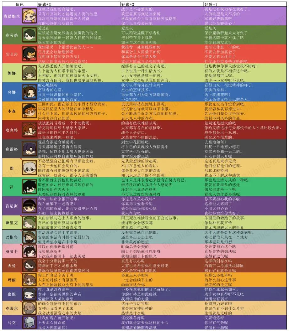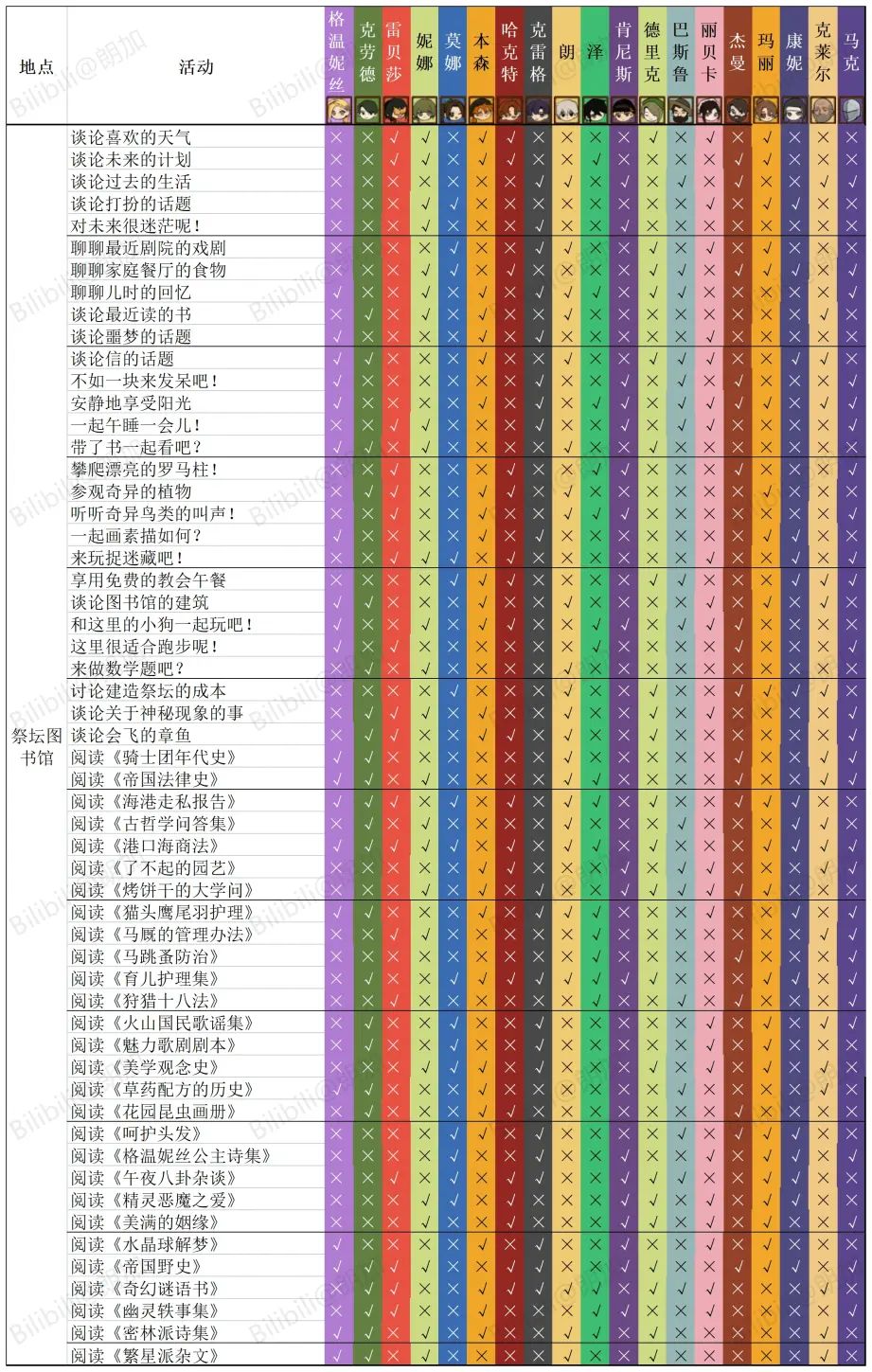 三编~新增内容:邀约四个场景选项(补全版)〈16楼〉,课程获取方式及完成奖励〈17楼〉,角色喜欢物品及通用送礼物品〈18楼〉,探险事件的选项与结果(全)〈19楼〉,怪物及boss的掉落物品〈20楼〉,暗巷失物及失主〈27楼〉