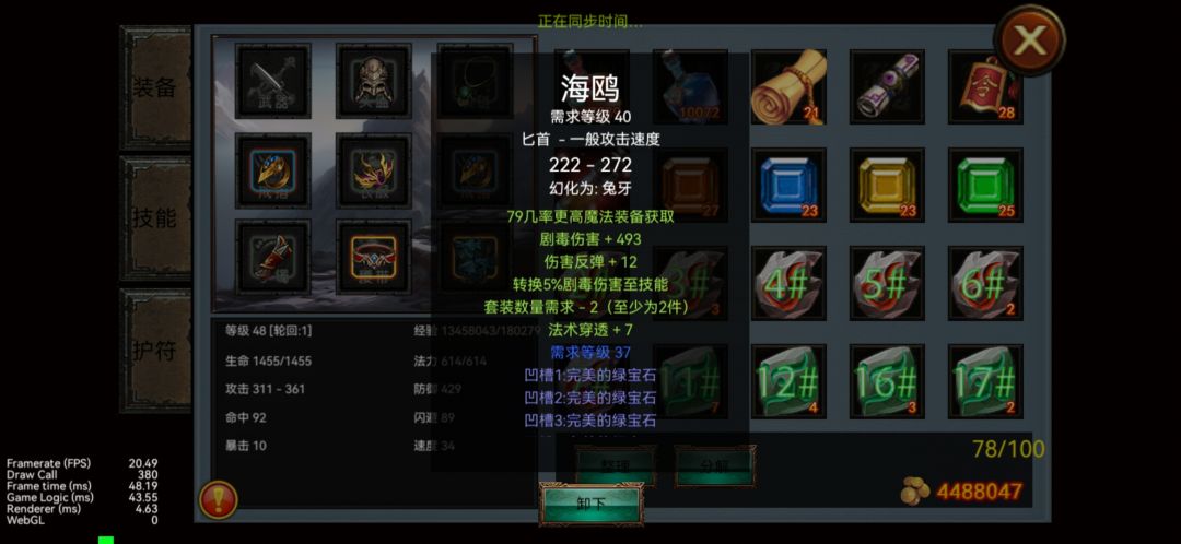 1.游戏可以存档和上传,贫民每天两次,会员每天三次。这个功能有大用。2.卡双倍经验卷轴。钻石商店里的双倍经验卷,说明是一个小时的,实际上你重复刷图,不停的存档小退会把它卡成计算离线游戏时间。3.重复吃汤圆。利用好游戏的存档和读档功能,吃汤圆前先存档,到游戏吃完汤圆后,直接退出游戏,回到游戏界面读档。你会发现汤圆读档回到了背包,汤圆的经验效果也出现了。4.魔法掉落。这个数值很重要,直接影响你的出货概率和装备数值的最大值。比如45级想要赌一个160毒攻以上的戒指,需要凑一身魔法掉落的装备,魔法掉落500以下是不会出现满值装备的。5.装备不同出处的数值差异。以30级的装备黑手为例,在45级地图,包括之前的地图打出黑手的毒伤数值永远不会超过22,(包括带高mf装备去合成),但是进入到47级之后的地图装备的高数值开始出现了。图中高毒黑手是在48级图恐戮洞穴掉落。总结:本人是召唤开局,开三倍经验(双倍卷+广告),吃汤圆,20级之前就在新手村重复砍小怪,20级到30级,在三岔路口重复砍小怪,30级到40级在浅水镇砍小怪。30-35级做出35级两件套,开刷专属boss。一直打到毒灵装备成型,转换毒灵,开启灭世扫荡模式。后期装备制作以及爬塔等有专业的帖子,不再重复,祝各位萌新游戏愉快!最后附上一把制作失败的武器仅博一笑。。。