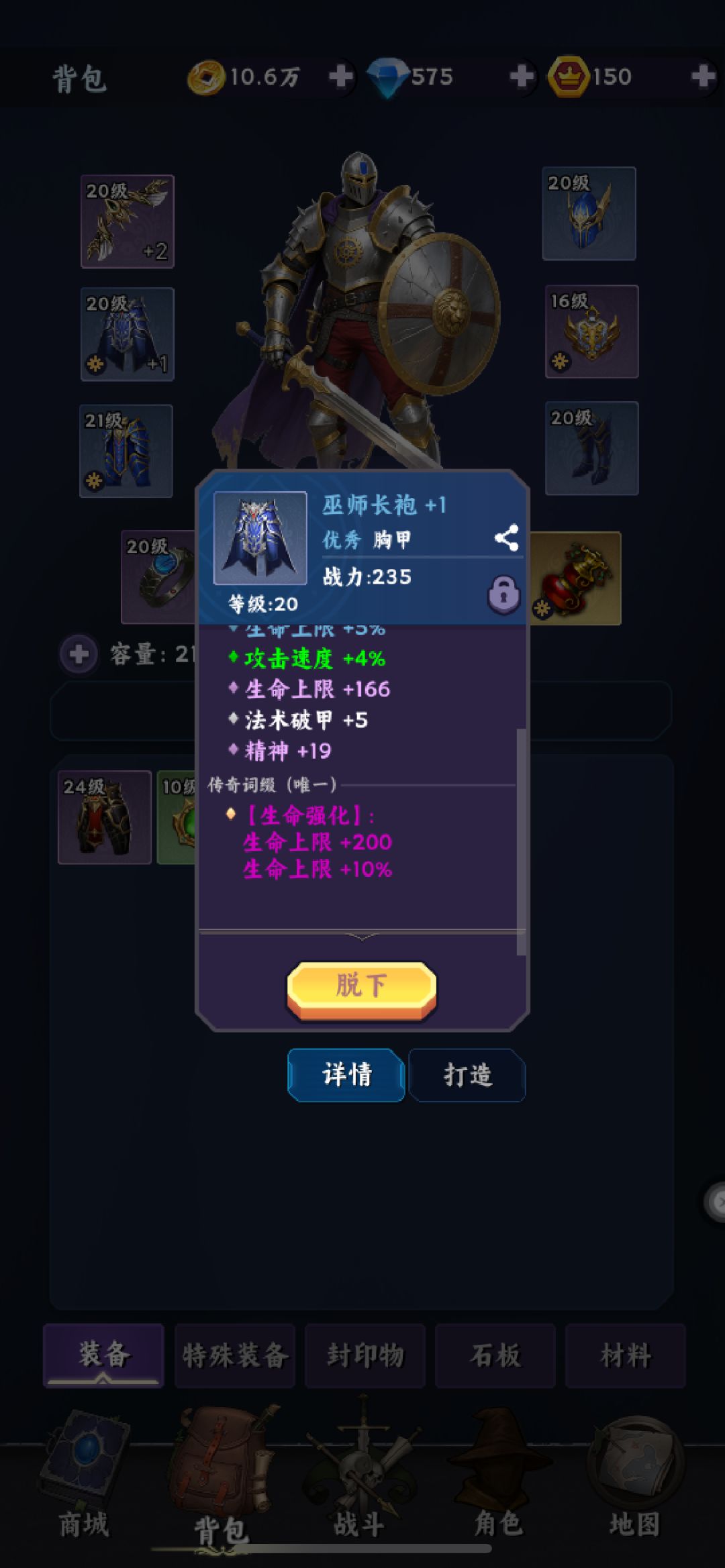 第一天,玩家在等级升到十级后迎来第一次序列选择,选择铁卫提高生存能力,基础属性加点为体质,铁卫特性为提高25%荆棘,所以装备优先属性荆棘可以提高自身输出能力,次选生命上限,生命恢复,护甲魔抗前期收益不大所以不选,前期第一天有什么带什么,传奇词缀选择,生命,荆棘,伤害减免