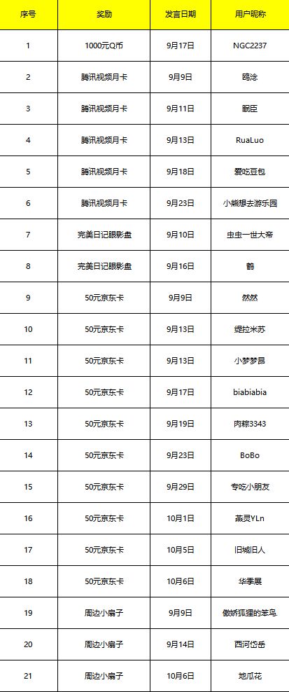 随机抽取5位,送出腾讯视频月卡*1;