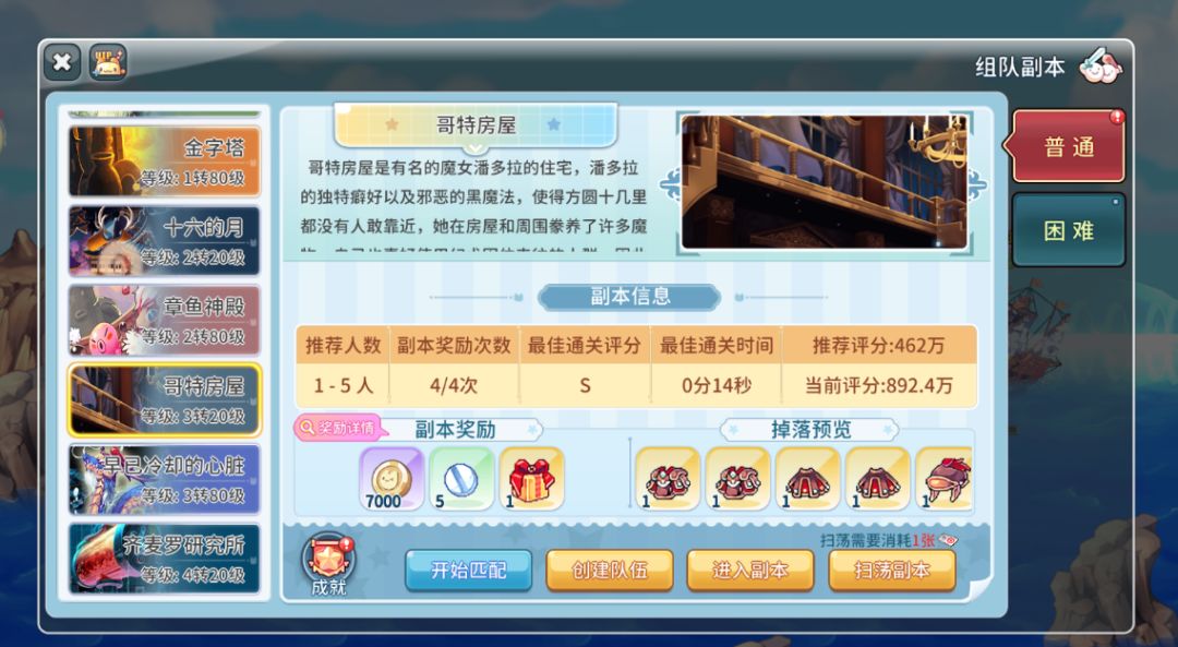 玩家角色等级需达到3转20级,之后即可前往阴森鬼宅的哥特房屋开启挑战