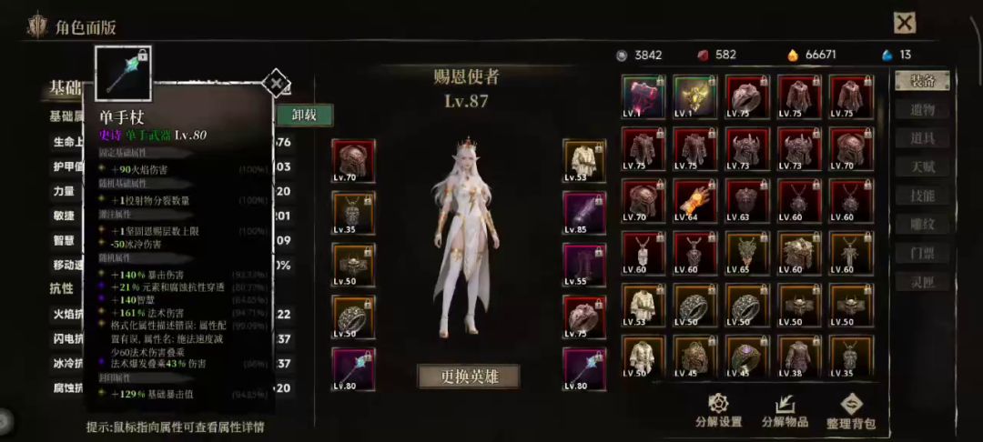 3.力量/敏捷/智慧:打一条你要主堆的属性。原则上属性只堆一种,中后期属性点关联传奇词缀,即时不关联,配合天赋%的联动增伤,总增可观。