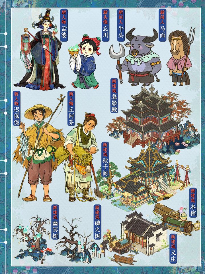 新建筑:暮影殿|义庄|秋千阁|幽冥树|磷火树|