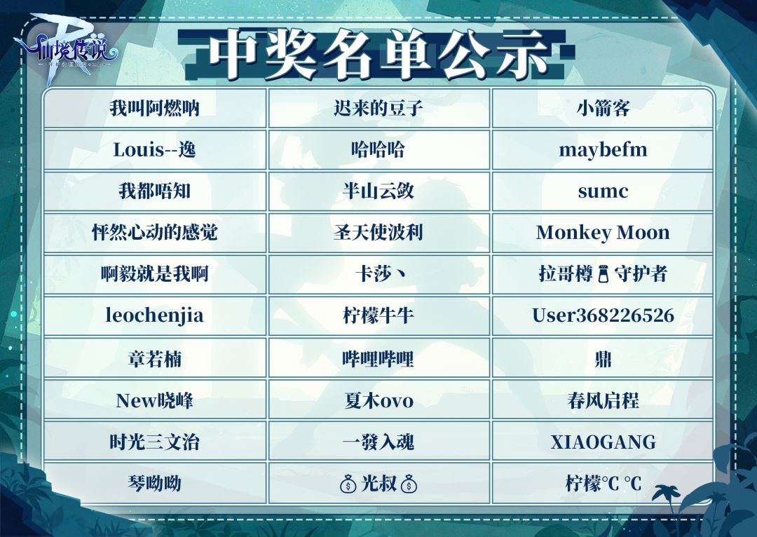 ✦恭喜以下30位冒险者获得「RO扑克牌」。