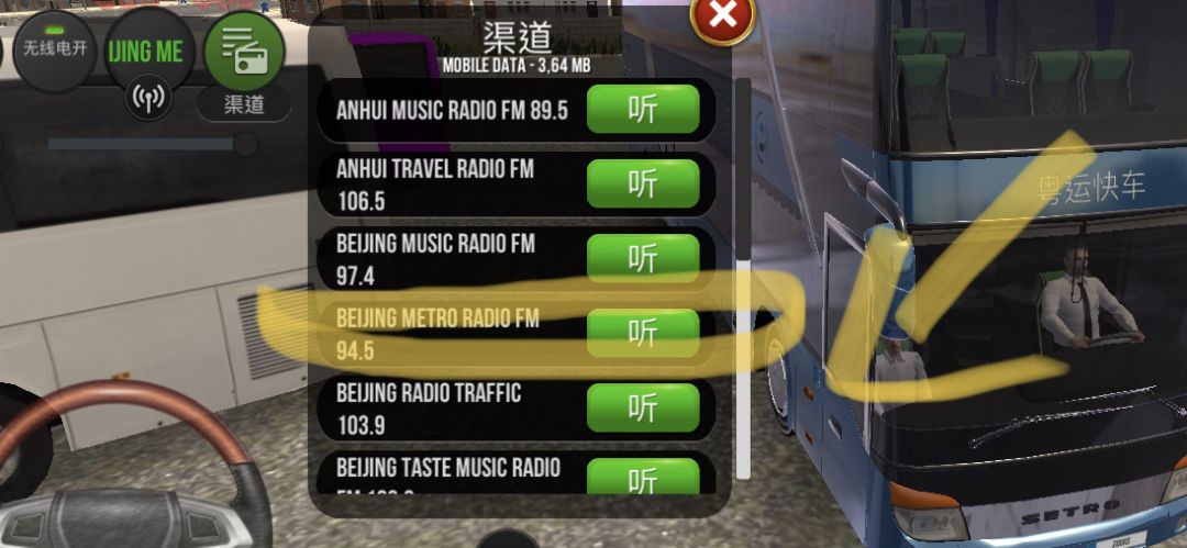 我也是最后才发现收音机怎么用的,还请大家耐心的听我讲解,我会说的很仔细哪些能用,没用的也不让你们去吸收,好了,废话结束,来正题,图放的比较乱,图中有圈圈的是能听的电台,开电台的时候要把下面那条线给拉两下,拉左拉右然后拉满,就是往右边拉满,拉满后车子走一走,然后点开频道选择,那里会有多少MB的信号,有了信号就可以点我圈的那些电台了,记得要开网络,实时电台,香,以上为电台怎么用,要是没看懂就评论问我,能看到,会一一回复