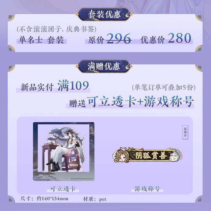 ③本次新品预售期实付满109元赠文司宥可立透卡1个+游戏称号1个,单笔订单可叠加5份