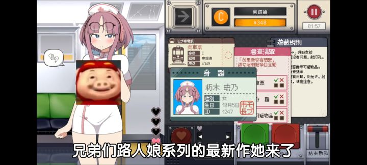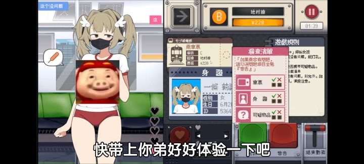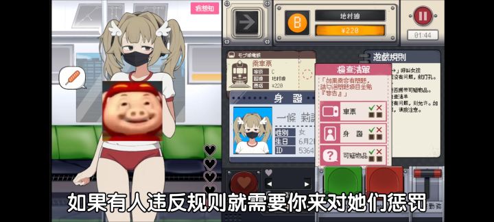- 游戏玩法:玩家扮演电车检查员,负责检查乘客证件、查看有无违禁物品,并决定乘客能否上车。在与“路人娘”互动时,她们会有各种不同反应,玩家的选择会影响剧情走向。完成章节任务后,能解锁新角色和额外故事线。