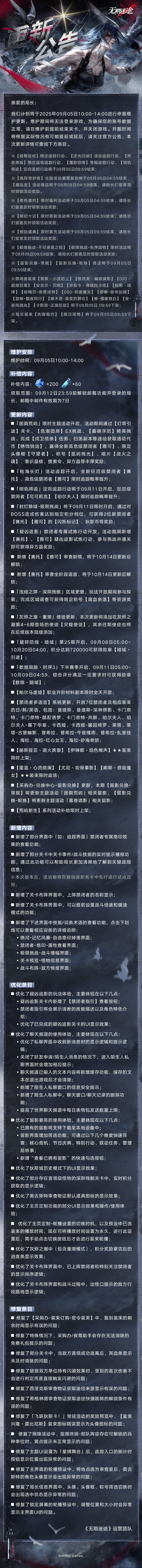 【公告】丨09月05日停服维护更新公告