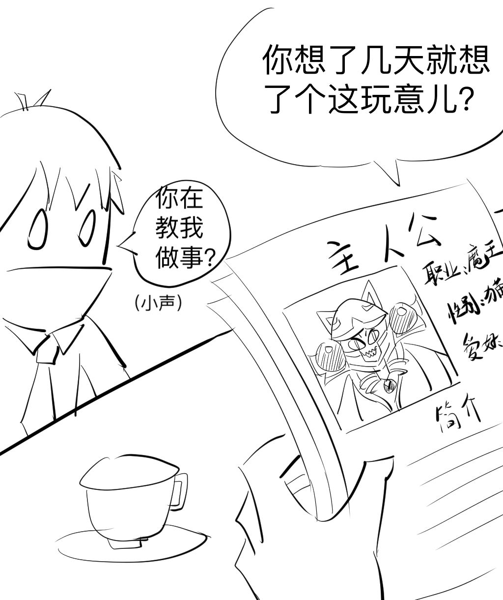 在一次会议中大家一边讨论各自的肥宅癖好一边讴歌青春,在聊到某部电视剧之后大家一致认为我们游戏的主人公就该是电视剧中那样的人(猫?)于是乎,主人公的设定就这么定下来了……第二天我兴高采烈的拿着我的第二版设定去给制作人看时,制作人和颜悦色的翻开了设定稿的第一页:“主角是个勇者……“制作人的表情从微笑定格为了虚无。