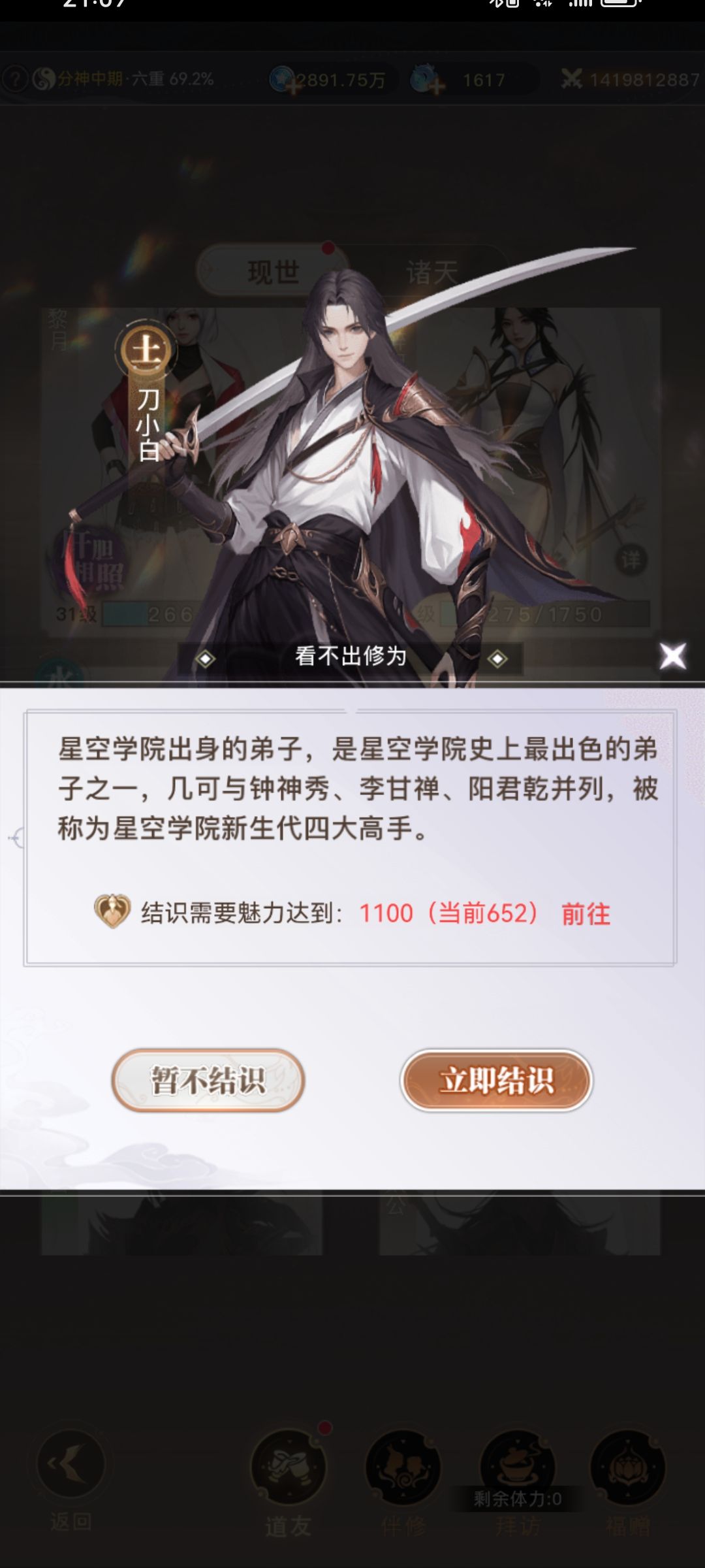 魅力值,是解锁道友的关键,每位道友都需要达到一定的魅力值才能够结识。