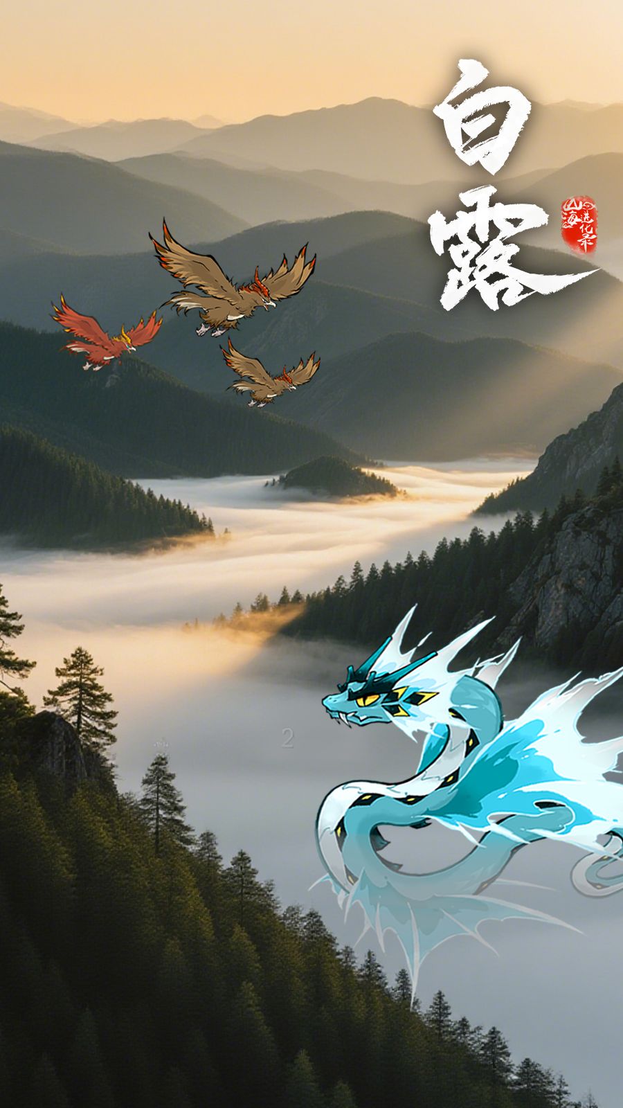 (公历9月7日-9日交节),此时山海间晨雾如纱、清露凝珠,层叠山林晕染出深浅秋意,正是与灵兽共赏霜林、聆听露滴私语的诗意时节。