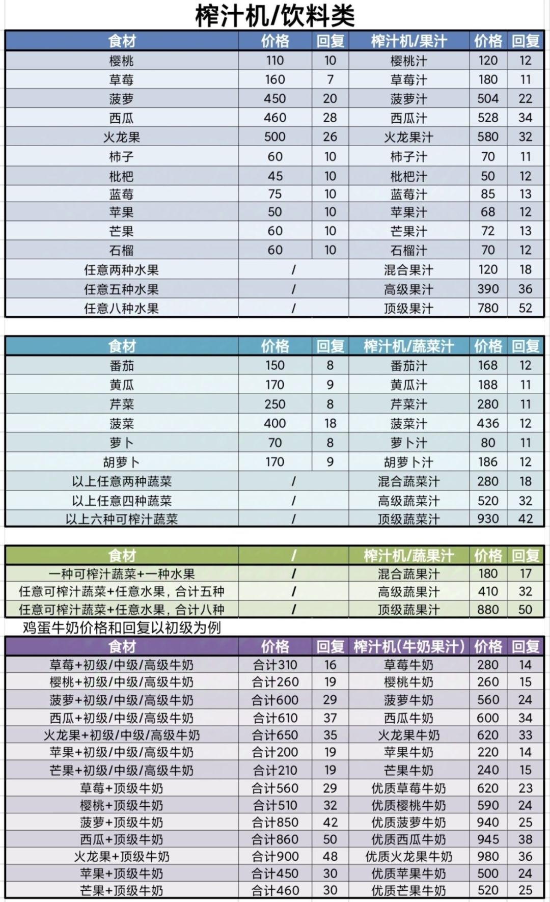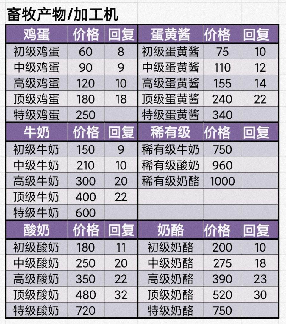 五测菜谱&食物体力恢复数值(作者:温暖)