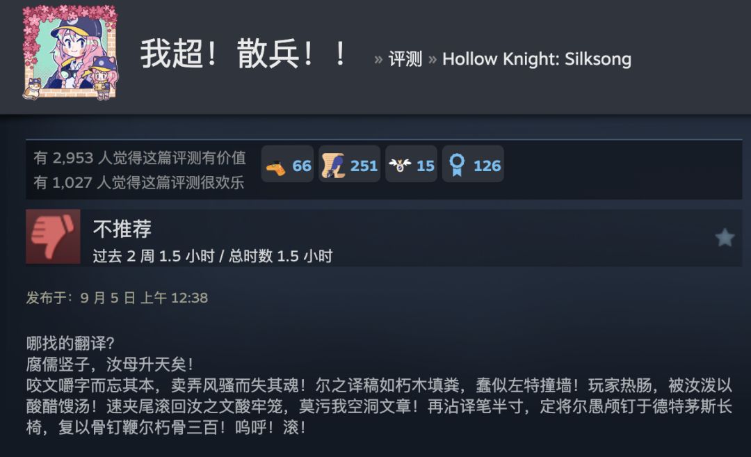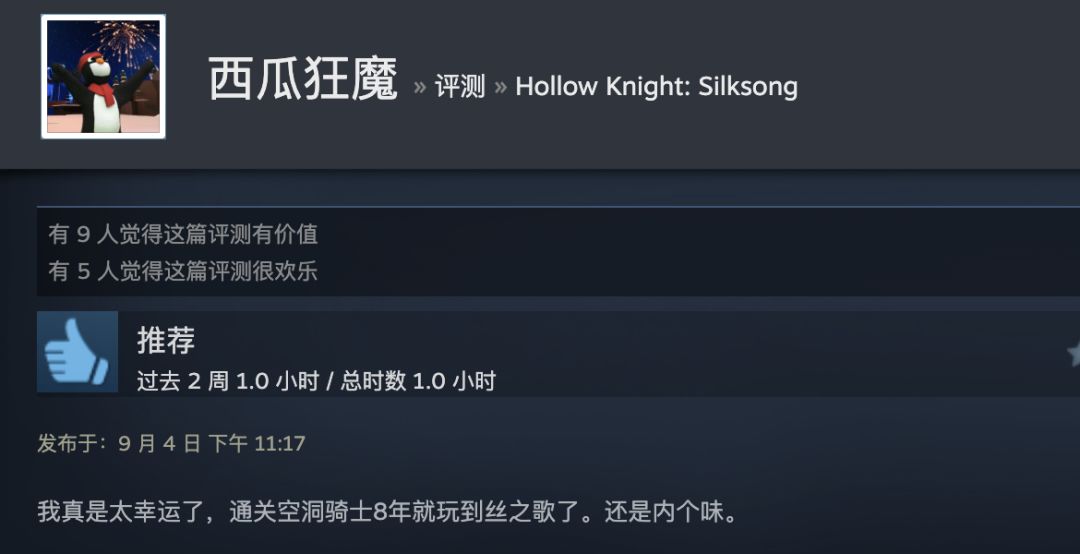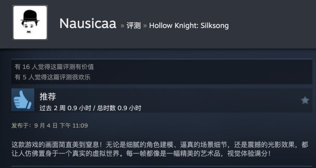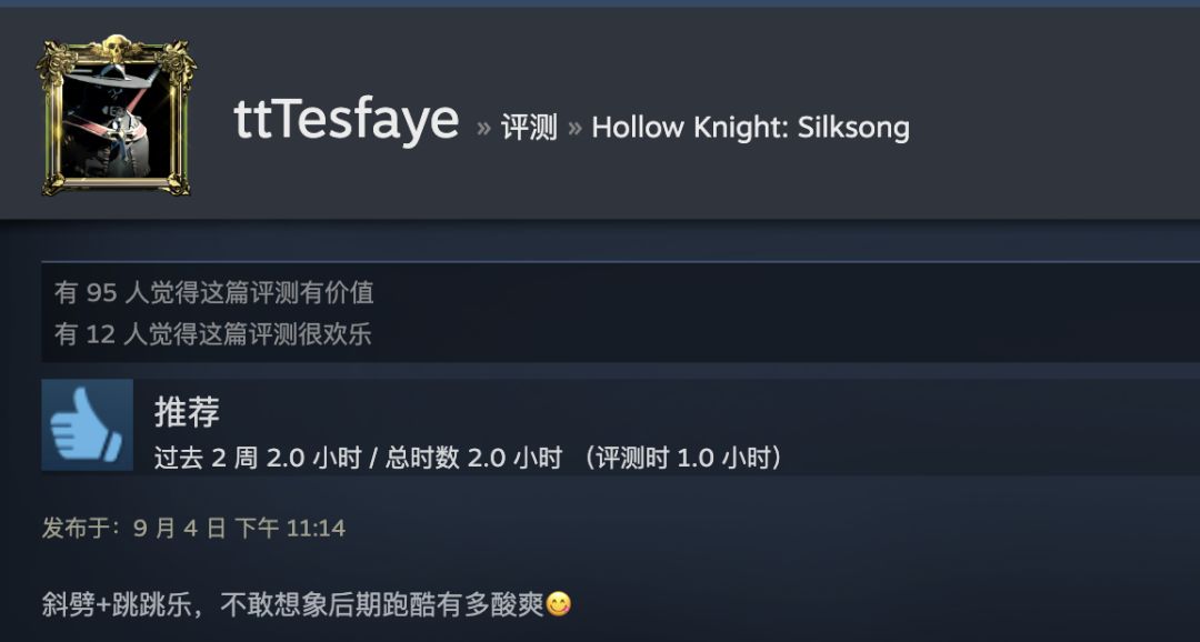 《空洞骑士:丝之歌》昨晚发售至今,获得2万多个评论,好评率为92%。