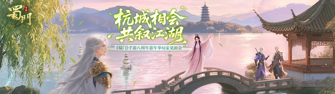从西湖断桥到蜀山之巅,蜀门江湖八年热血情谊即将在人间天堂续写新篇。这一次,让我们从掌上江湖走到真实江湖,共赴一场穿越虚拟与现实的线下之约吧~