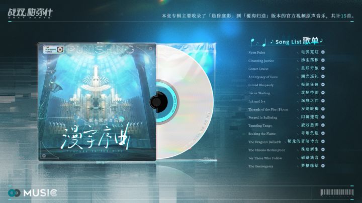 《战双帕弥什》版本原声音乐集Vol.5【漫宇序曲】今日正式上架QQ音乐和网易云音乐平台,欢迎指挥官前往收听。