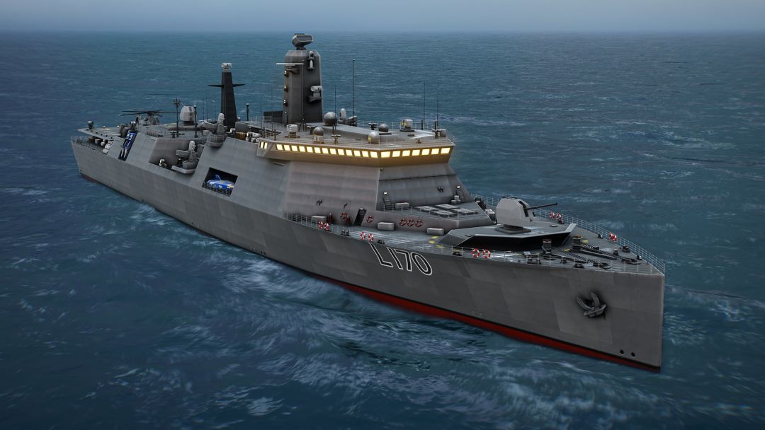 为Y国海军设计建造的多用途突击登陆舰。该舰采用隐身技术,并提升适航性。其凭借高度灵活的载荷适配性,可执行多样化海上作战任务;搭载高功率轮机,能够在复杂海况下高速航行,并保持卓越机动性,从而在海战中取得优势。