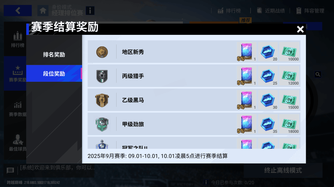 天梯赛、排位赛、经理排位赛、巅峰赛奖励更新,「蓝券」、「精选球员包」以及「巅峰球员包」等你来领!