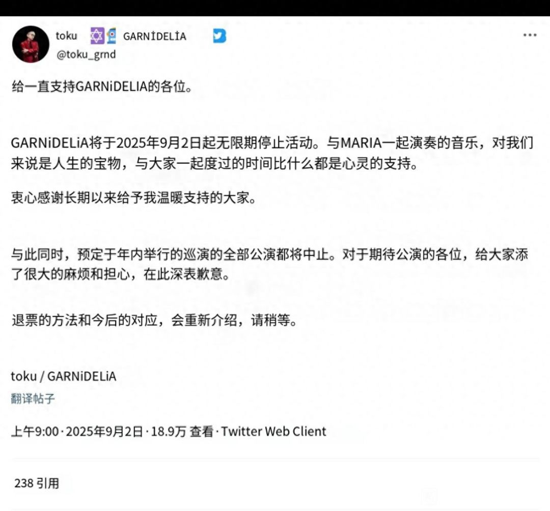 前几天有个新闻,直接震惊了整个东大阿宅圈,那就是“GARNiDELiA无期限停止活动!”。是的,你没看错,就是莫名其妙在特酷(toku)的个人X上直接发表了,连美依礼芽(MARiA)都不清楚发生了什么……