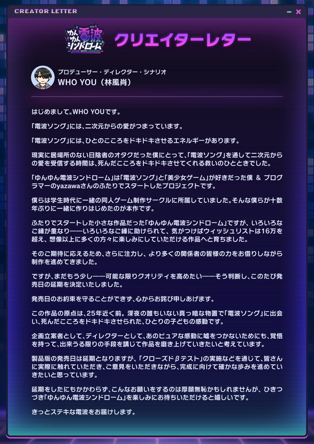 Alliance Arts宣布,原定于10月30日发售的电波曲×怪文书×音乐游戏《晕晕电波症候群》,为了进一步提升游戏质量,官方决定延期至今年冬季发售。