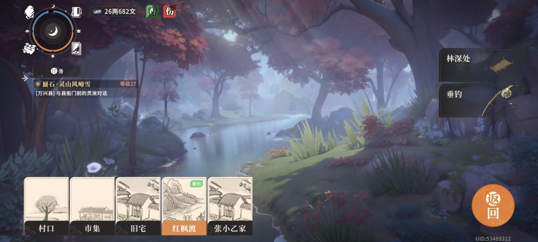 第二步,蜀村小地-红枫渡-趁buff时间内夜晚钓鱼