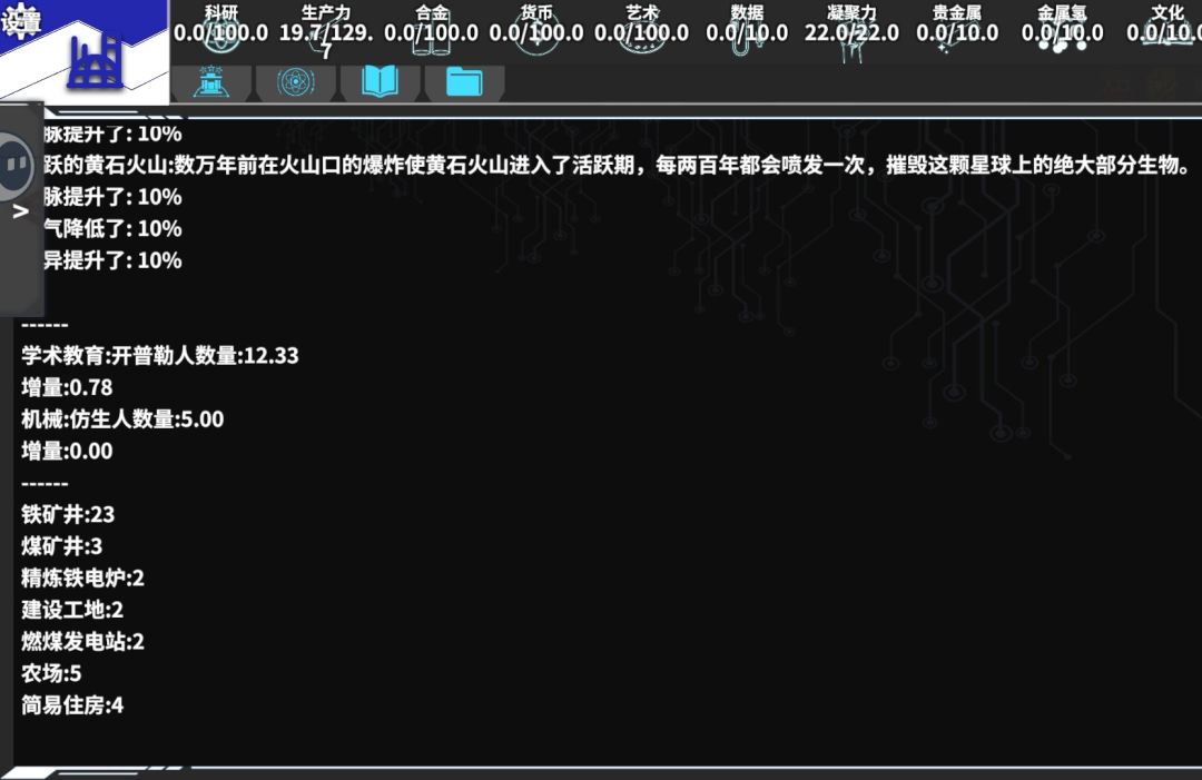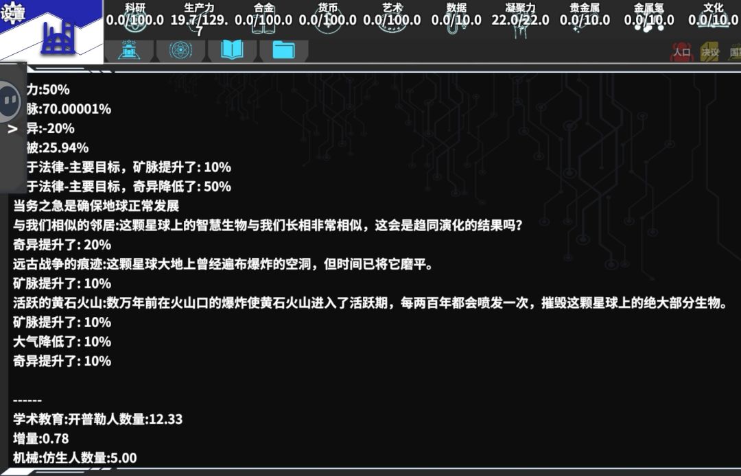 希望可以通过这个查询一些内容,比如产业等级、世代、政体、效率、专家、官员、士兵、公平、经济、自由、秩序等信息,比如说知道去哪里看或者知道是怎么得来的,亦或者有什么用!