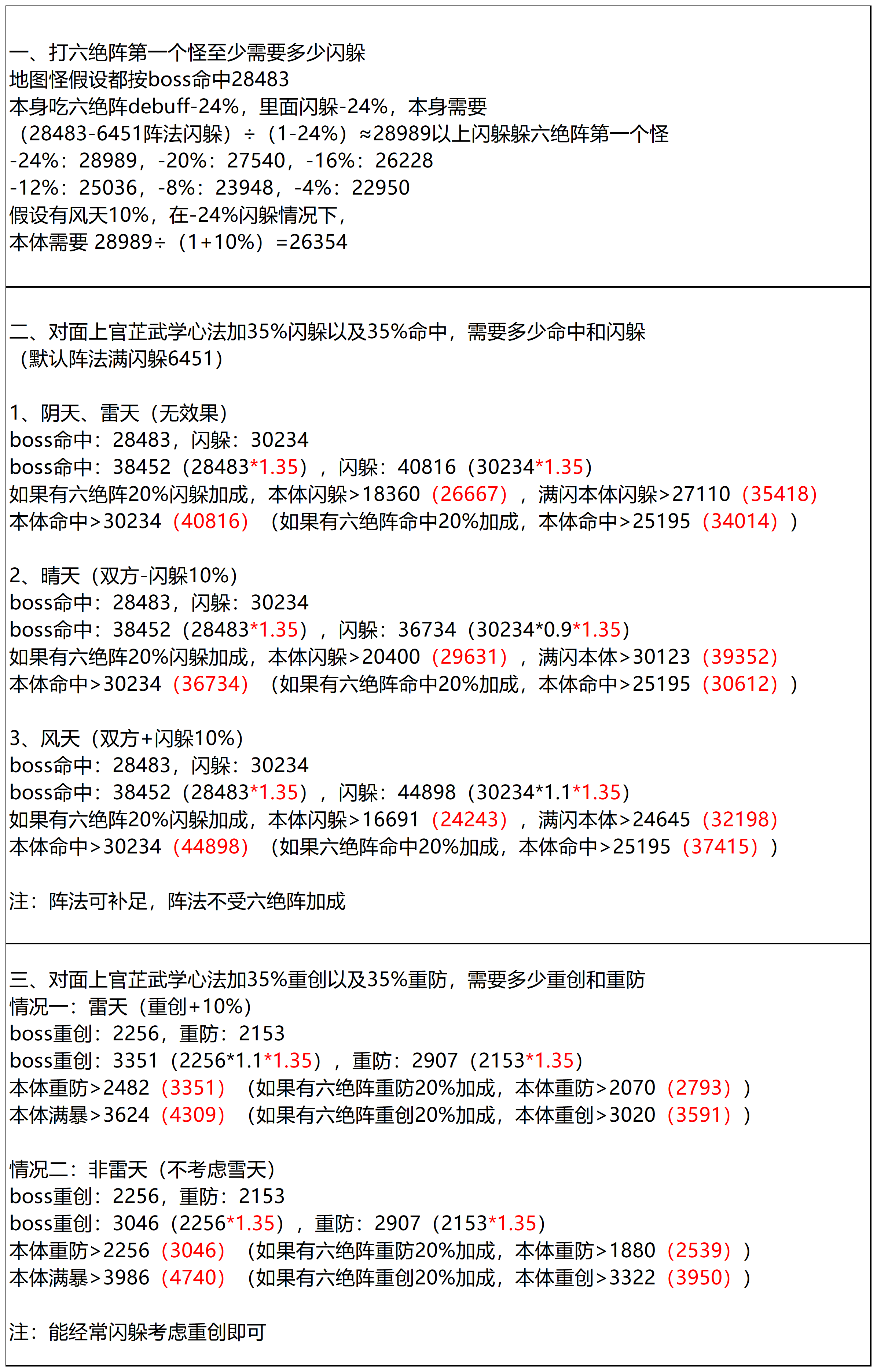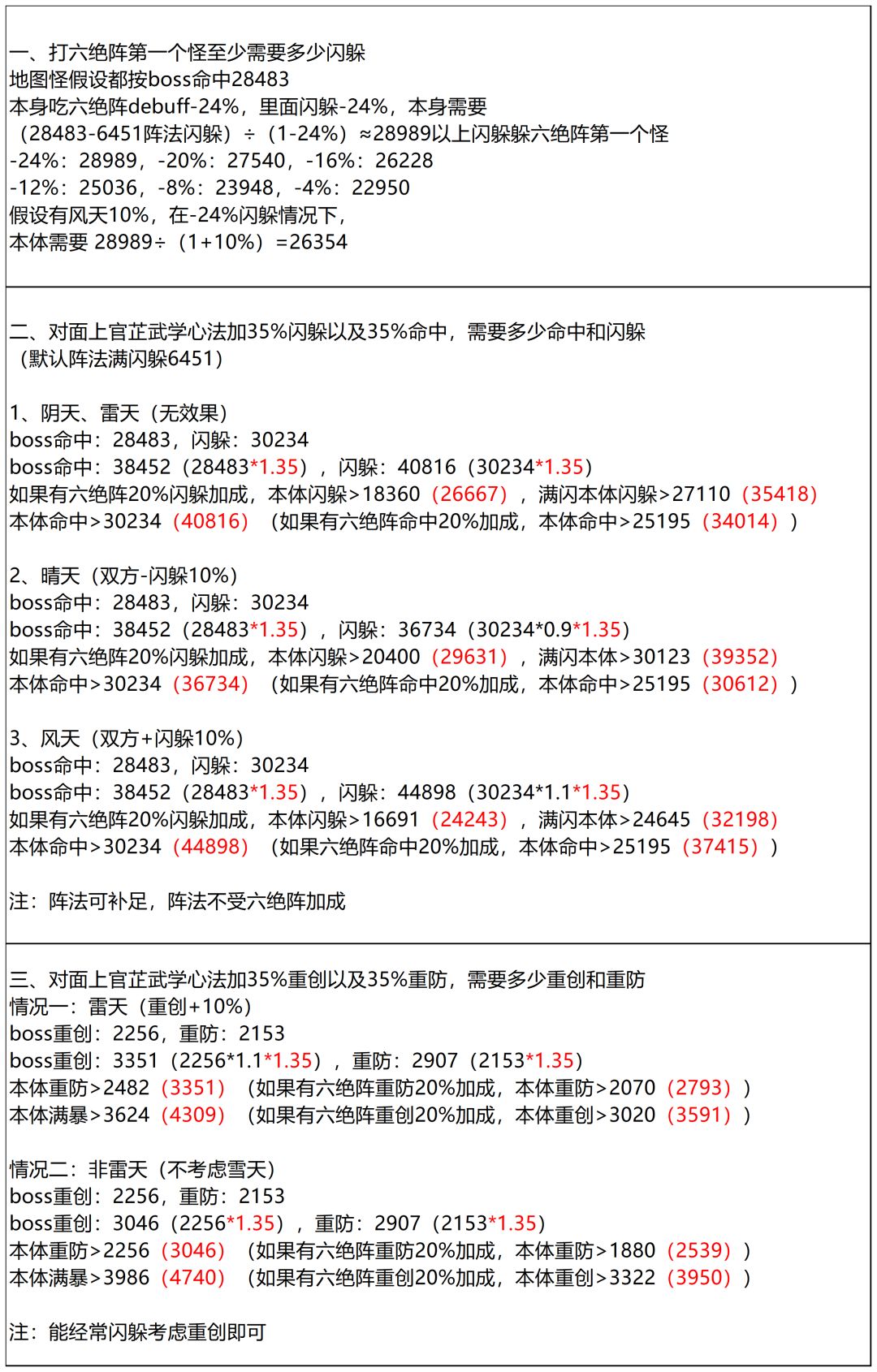 4、六绝阵怪闪躲所需&boss武学对应天气和六绝阵所需属性
