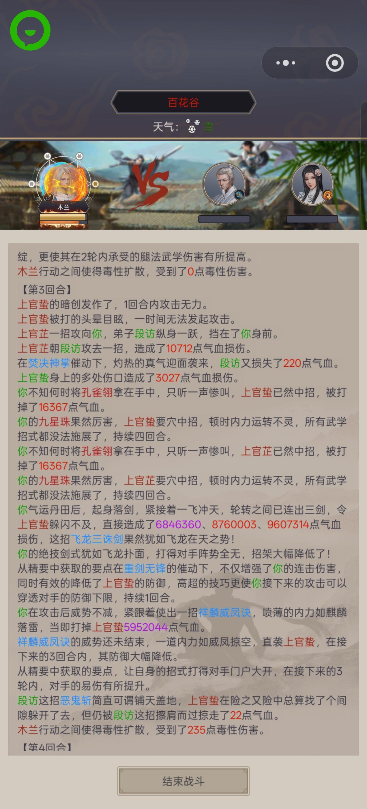 带孔雀暗器可以让对面不出那些加属性武学,需要属性就不用那么高(看下面,封招之后就没有出)
