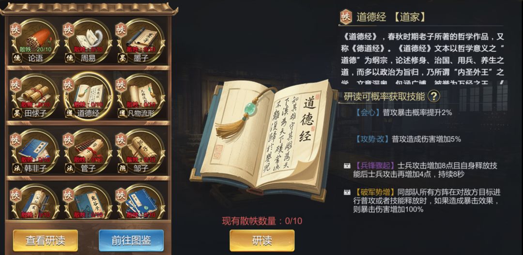 3、如果本卷帙的所有技能都已获取,则无法再对本卷帙进行研读。