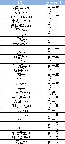 近期部分违规用户名单如下图
